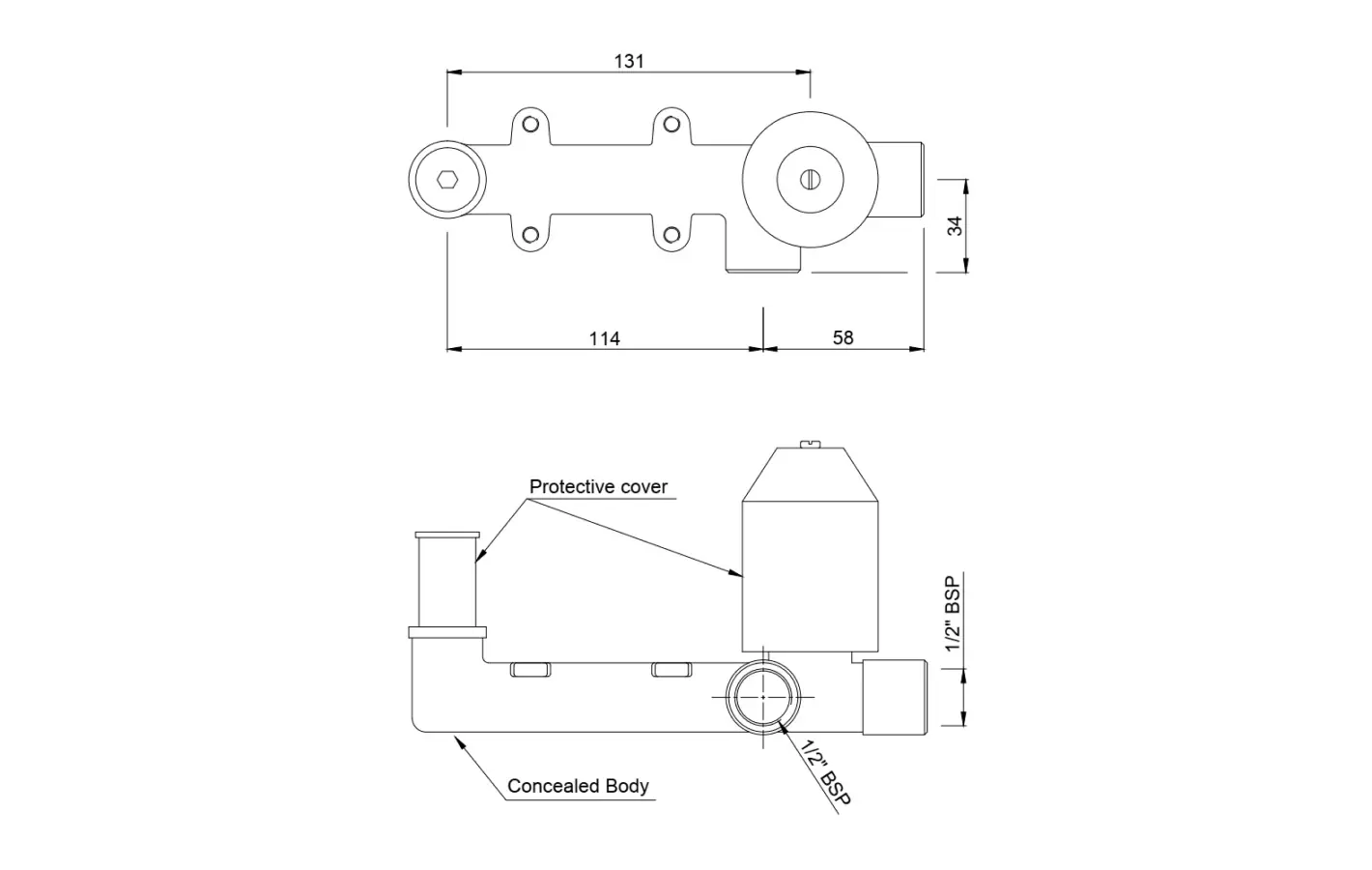 Concealed Body for Single Lever wall mounted Basin Mixer with protection cover old, But without Exposed Parts