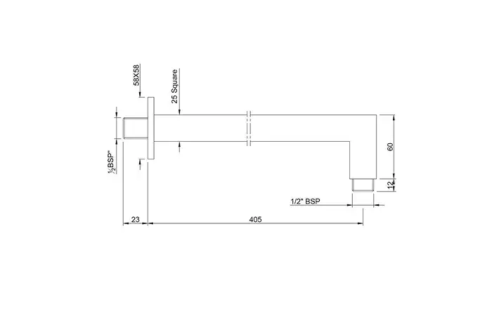 Shower Arm 400X25X25mm Square Shape for Wall Mounted Showers with Flange