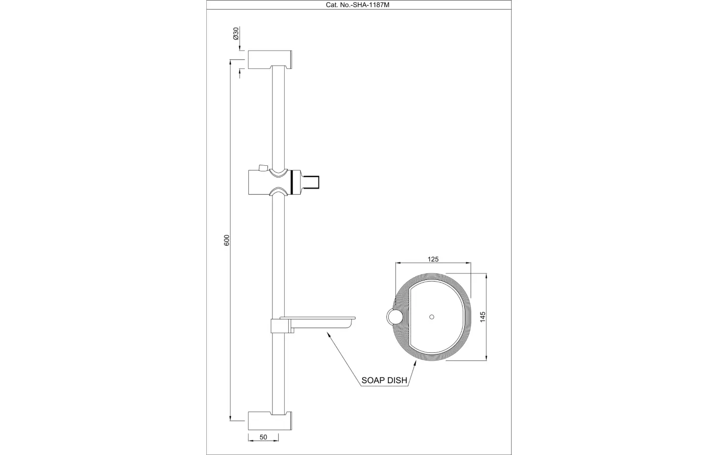 Slide Rail 19mm dia. & 600mm with Soap Dish