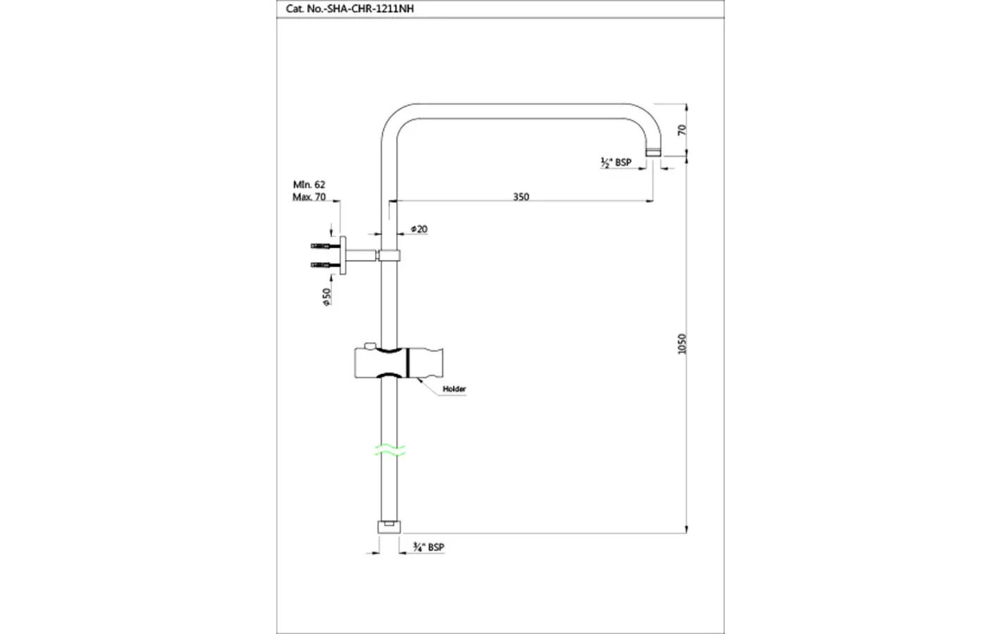 JAQUAR SHA-CHR-1211NH EXPOSED SHOWER PIPE FOR WALL MIXER In Stock