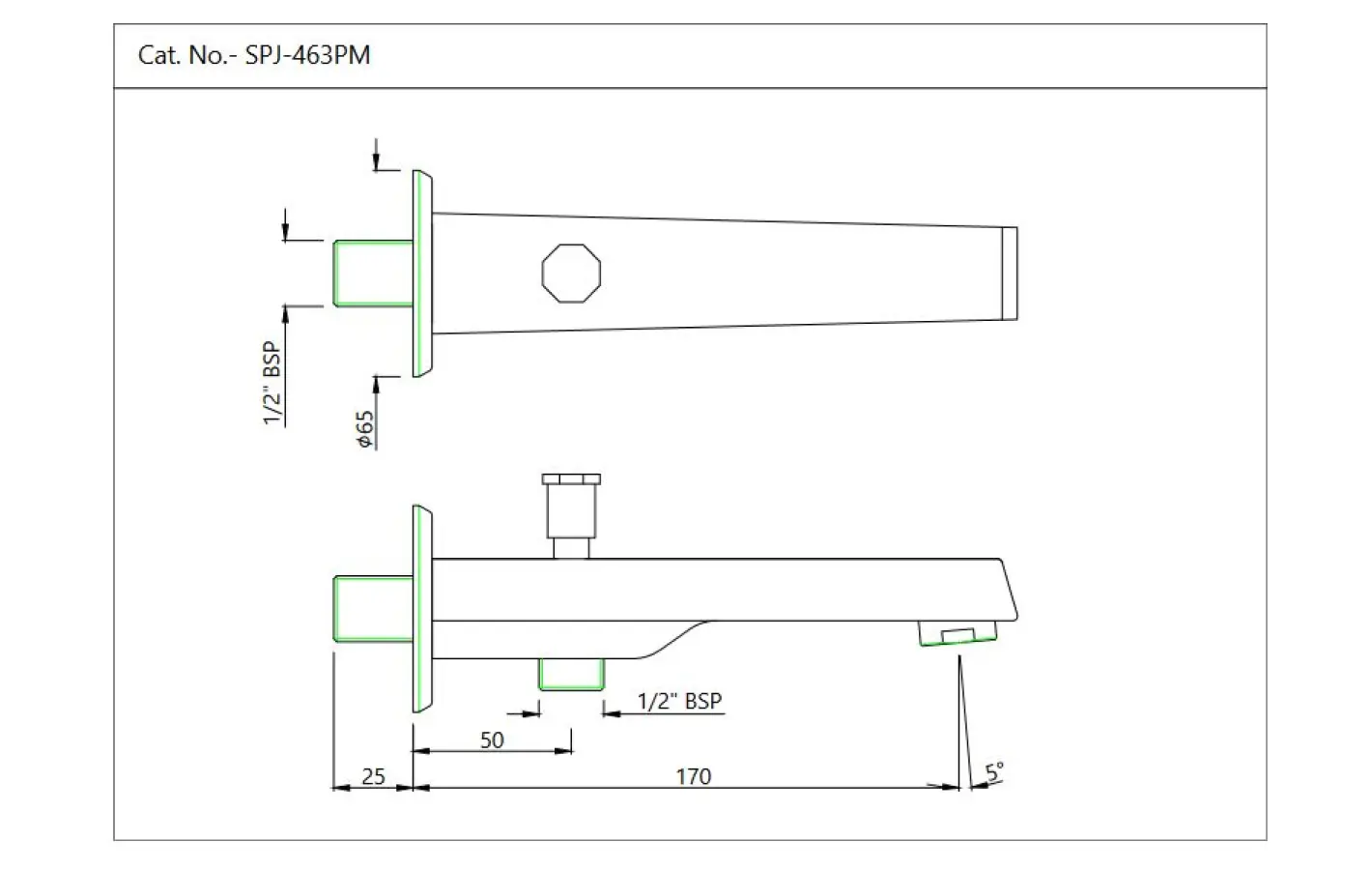 Bath Tub Spout With Button Attachment For Hand Shower With Wall Flange